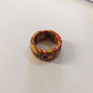 Anillo de madera manufacturado a partir de la recuperación y reciclaje de patinetas rotas. Diámetro 58mm.