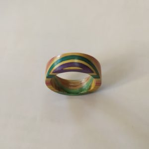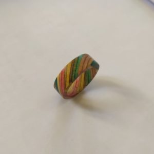 Anillo de madera manufacturado a partir de la recuperación y reciclaje de patinetas rotas. Diámetro 60mm.