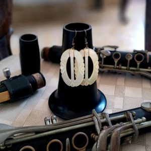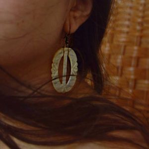 Aretes confeccionados con hebillas antiguas de nácar. Redefinen el concepto del objeto y se crea un accesorio singular y único.