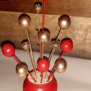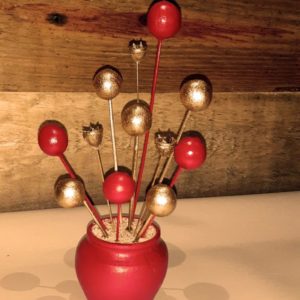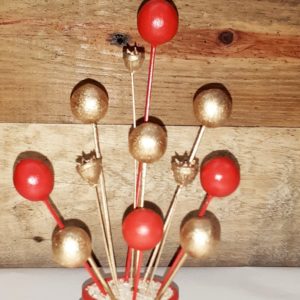 Artesanía elaborada por los abuelos de Buen Rollo, fruto de la inspiración del momento en que ha sido realizada, utilizando para ello lo que la naturaleza les ofrece, es este caso han preferido usar solamente el palillo de coco y las bolas de ocuje, elementos que le dan ese toque distintivo de elegancia y limpieza.