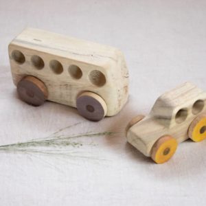 Carro de madera para rodar y empujar. Dimensión: 16cm de largo x 11cm de altura x 5cm sw ancho.