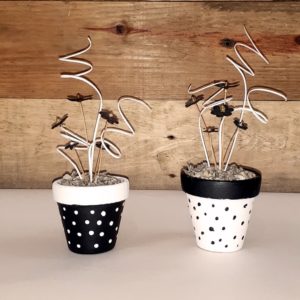 Kit de Regalo pareja de 5 objetos, Maceta blanco y negro, Maceta negra y blanco, Plato organizador, Agenda, Cuadro tendedera negro.