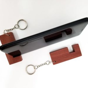 Llavero portacelular elaborado en madera. Medidas: 2.5x7cm